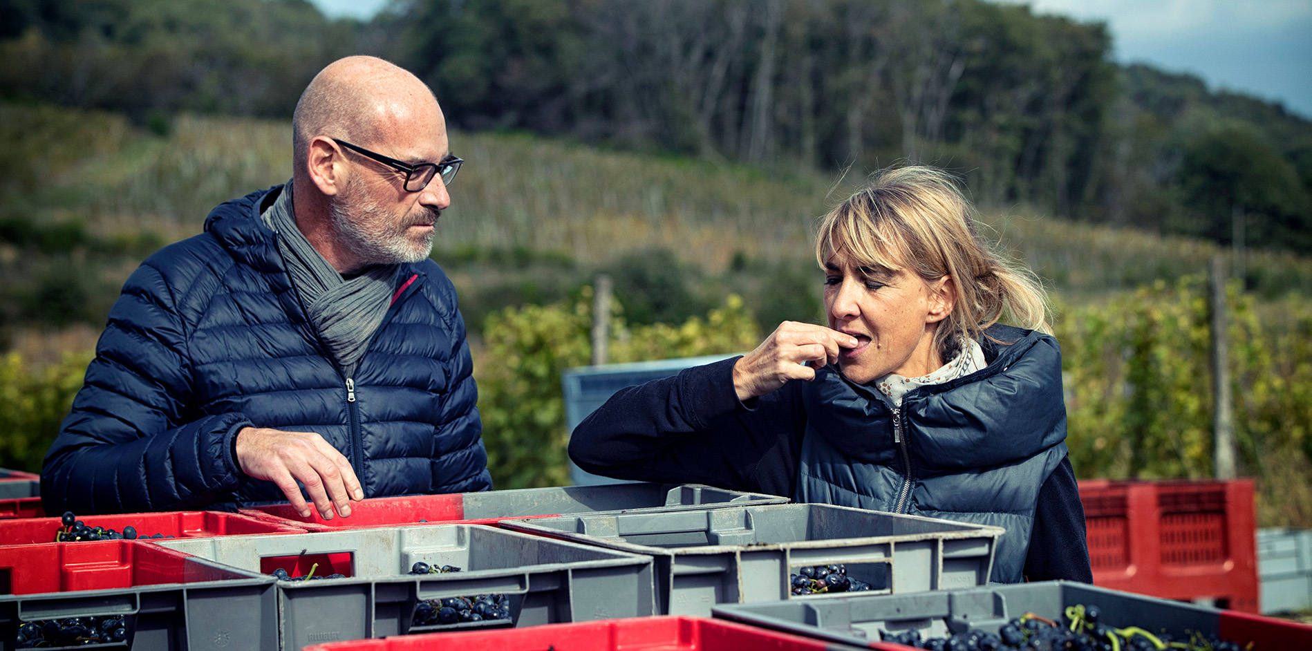 - Vendanges manuelles, taille douce, enherbement, paillage naturel.