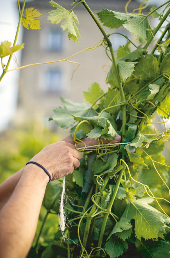 micro-crawler, and by horse. There is no shortage of tasks: sap-flow-respecting pruning, training on stakes, no hedging is practiced to allow the plant to complete its vegetative cycle, winding, braiding, cover cropping, mulching… Herbal teas, plant decoctions, and dynamizations are used throughout the plant’s vegetative cycle, respecting the lunar calendar, performed only according to needs and individualized for each plot.